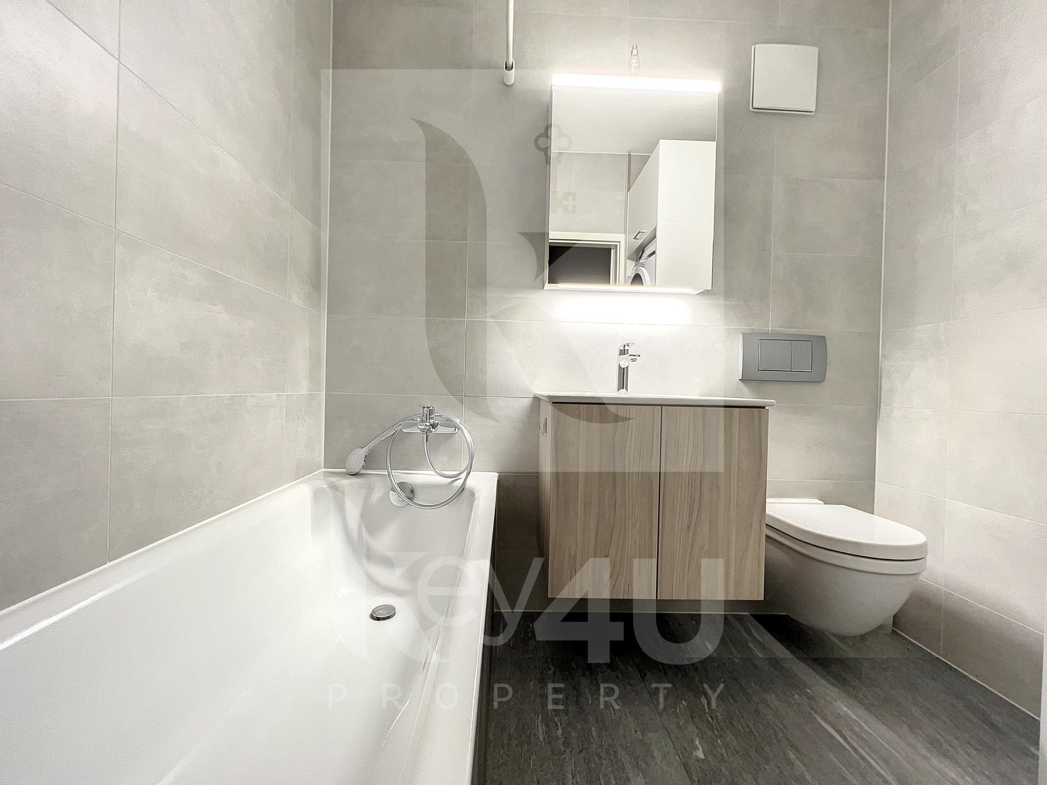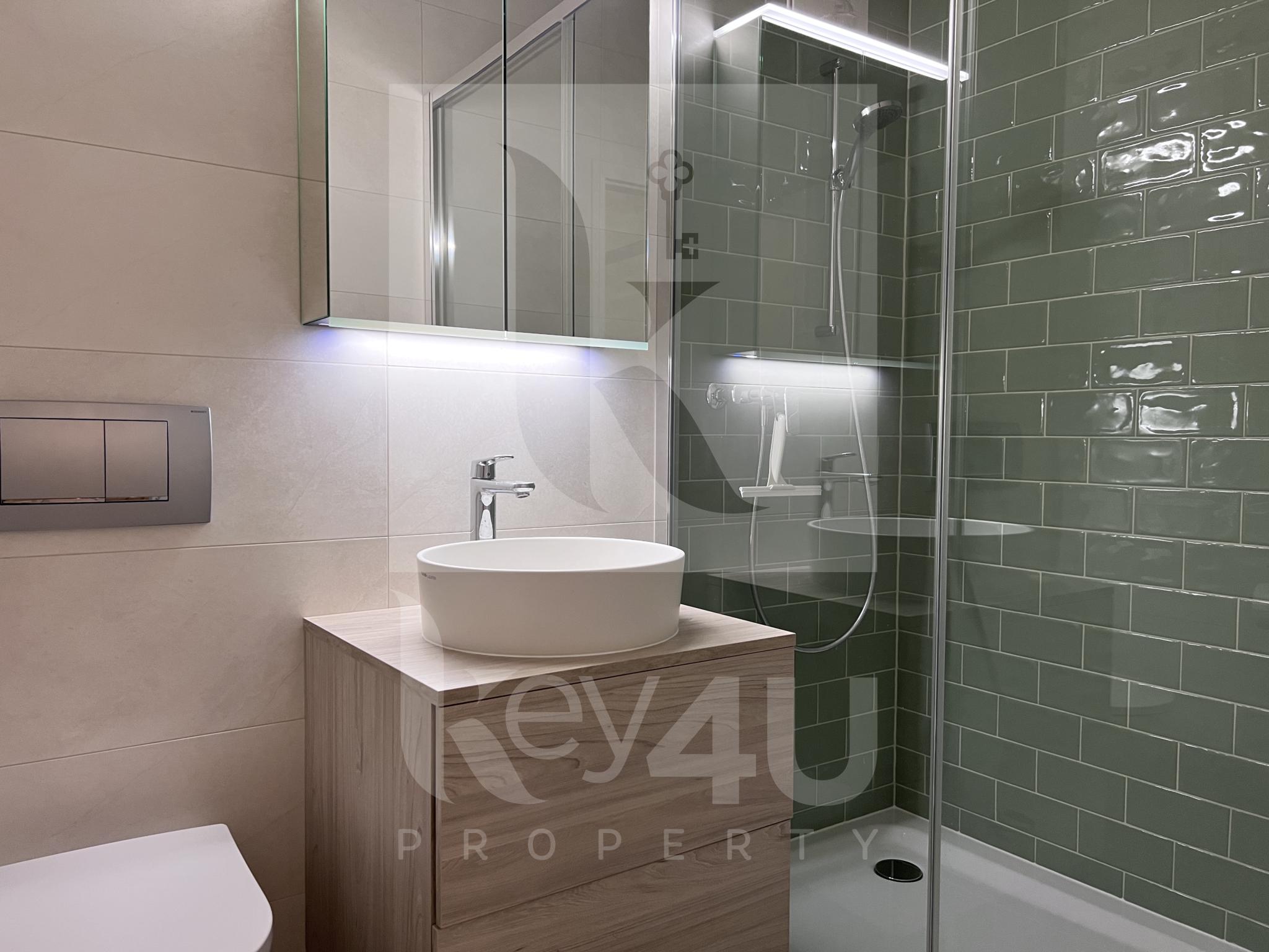 * Une salle de bains avec vasque, toilettes et buanderie privée