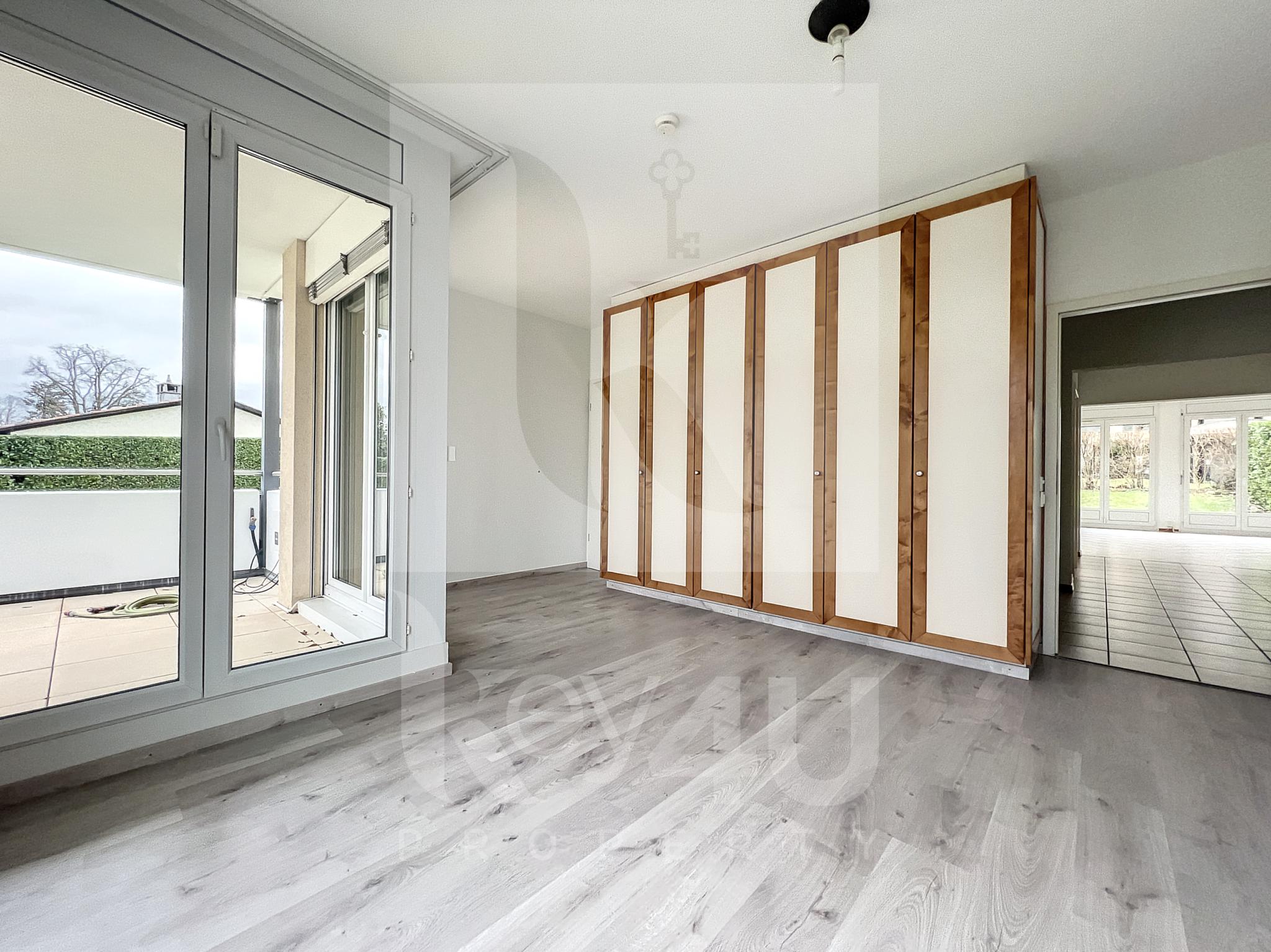 * Une chambre à coucher avec penderies et accès au jardin