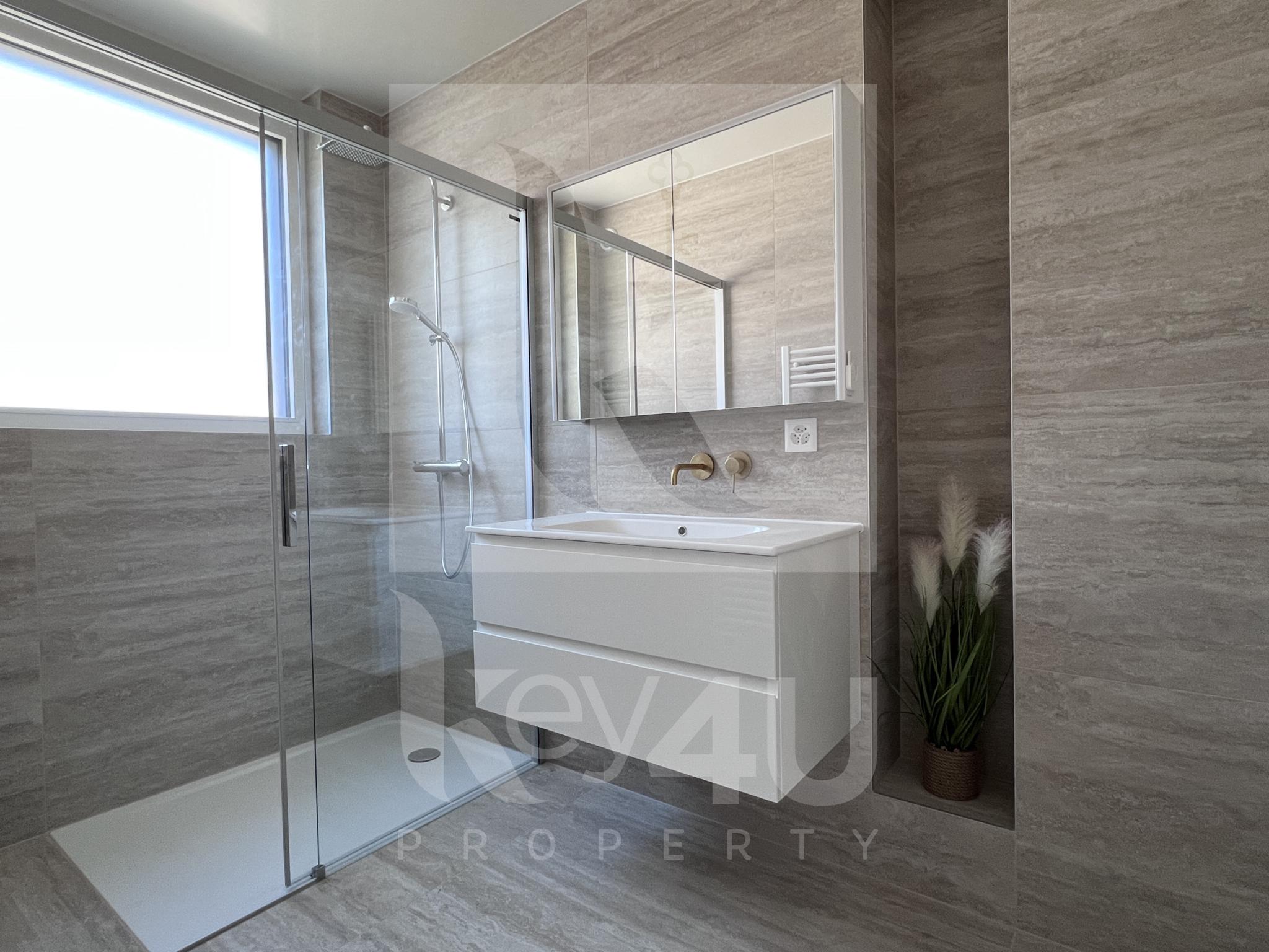 - Une salle de douches avec vasques et emplacement pour une buanderie privée (installation effectuée)