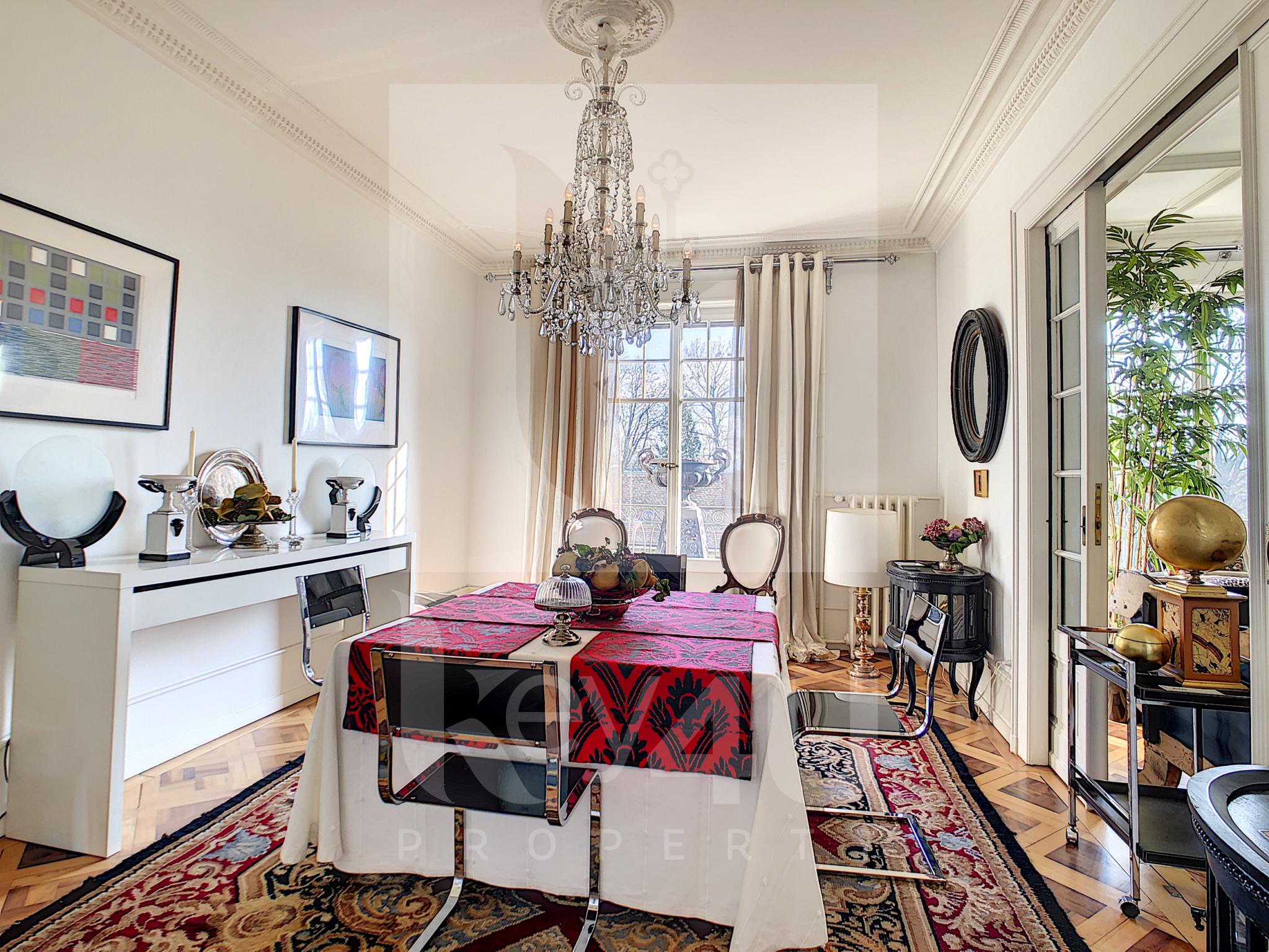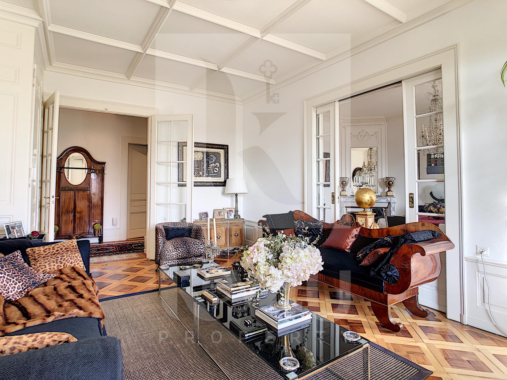 * Un bel espace de vie en enfilade comprenant un séjour, une salle à manger avec cheminée et un accès au balcon