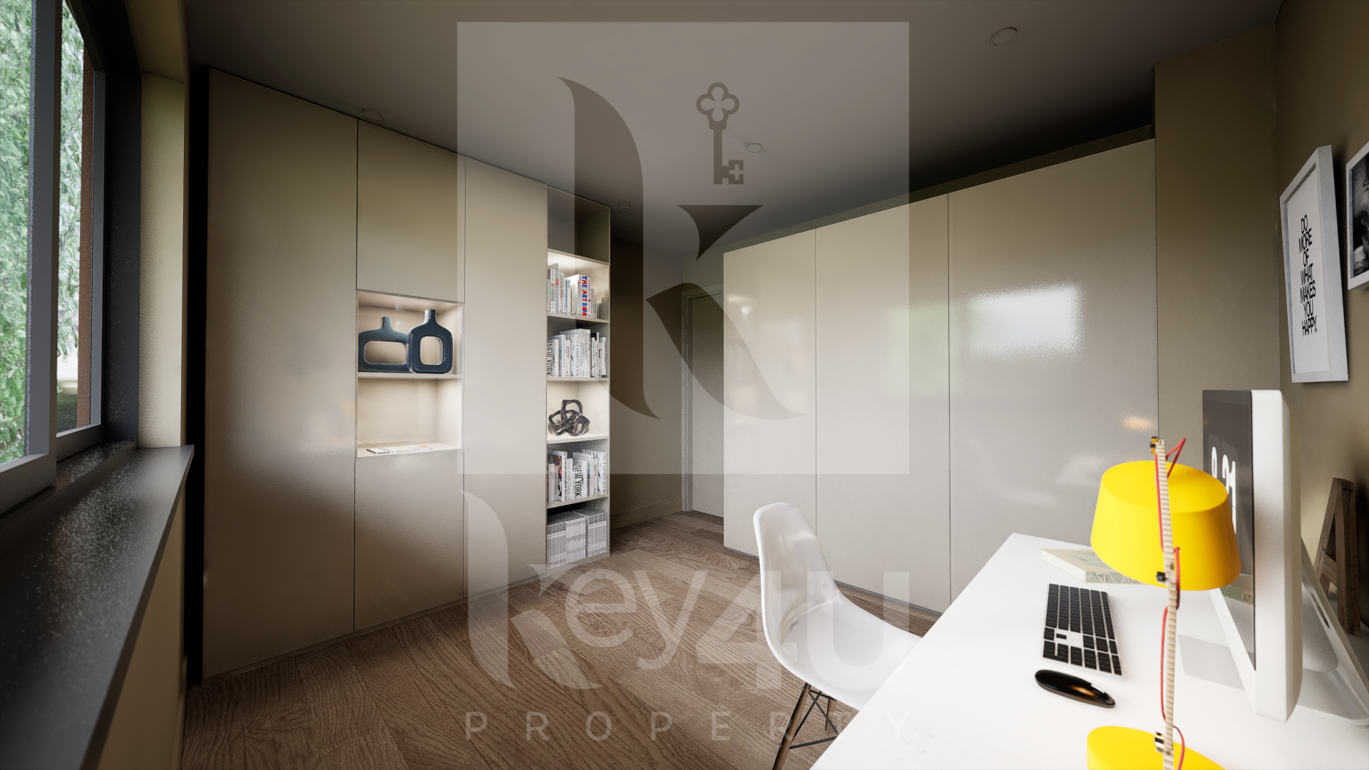 • Un studio ou chambre à coucher de 11.95 m2 complète le rez-de-chaussée.