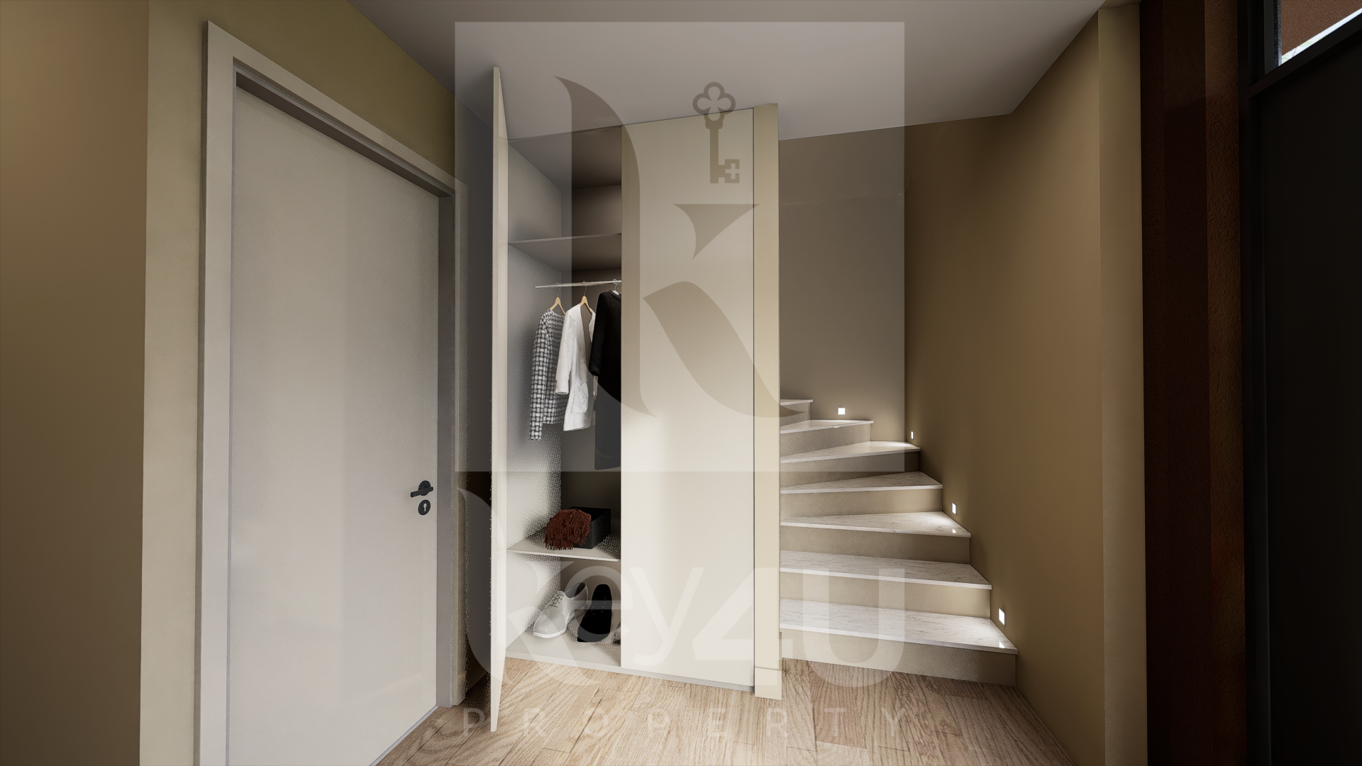 • Une armoire pour les manteaux et les chaussures complète cet espace.