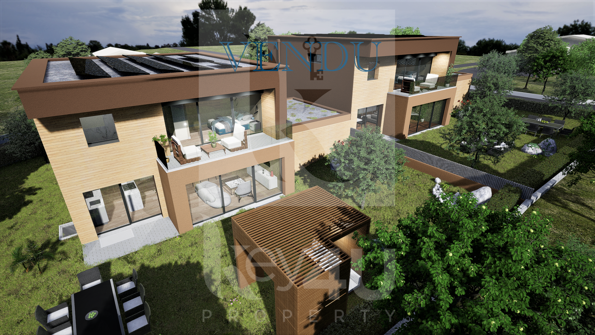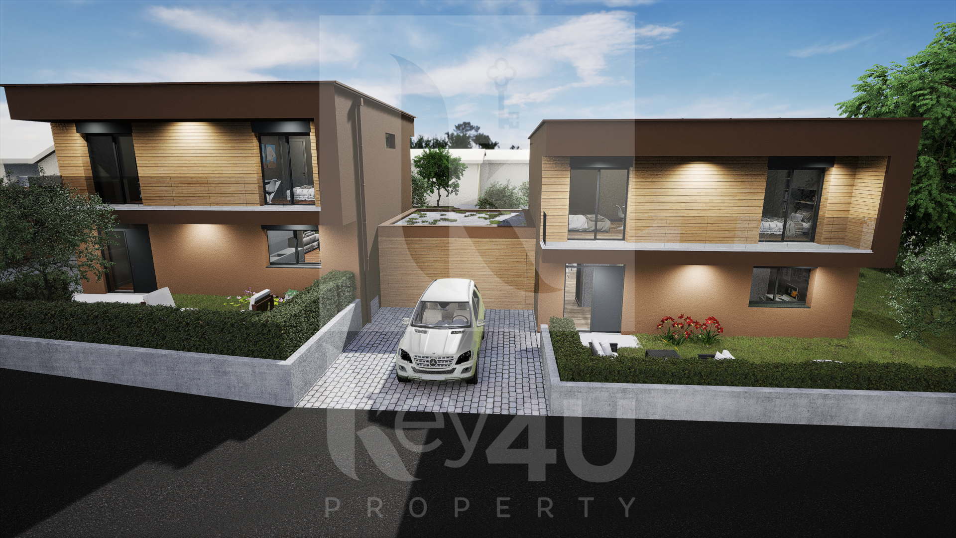 Magnifique projet de deux villas jumelles séparées par le garage qui donnent une intimité aux propriétaires.