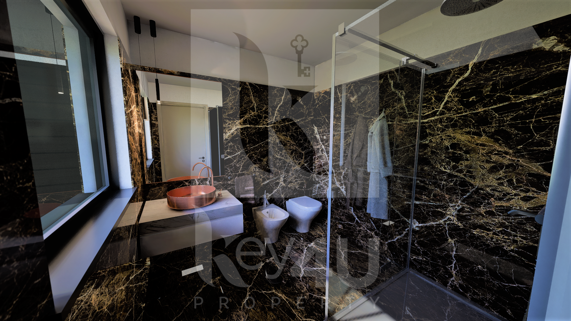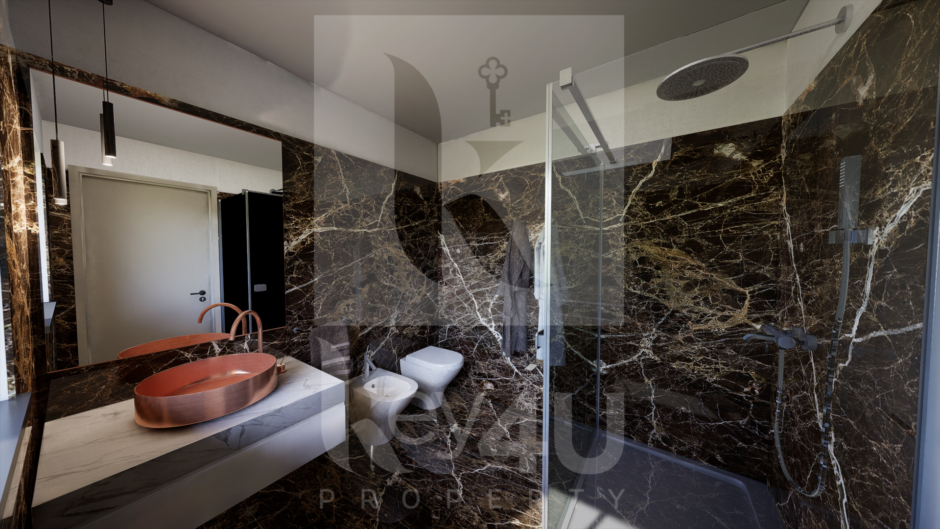 • une chambre parentale de 15.65 m2 avec une salle de douche comportant une douche cabine, lavabo double et un toilette (possibilité de mettre un bidet en lieu et place du lavabo double).