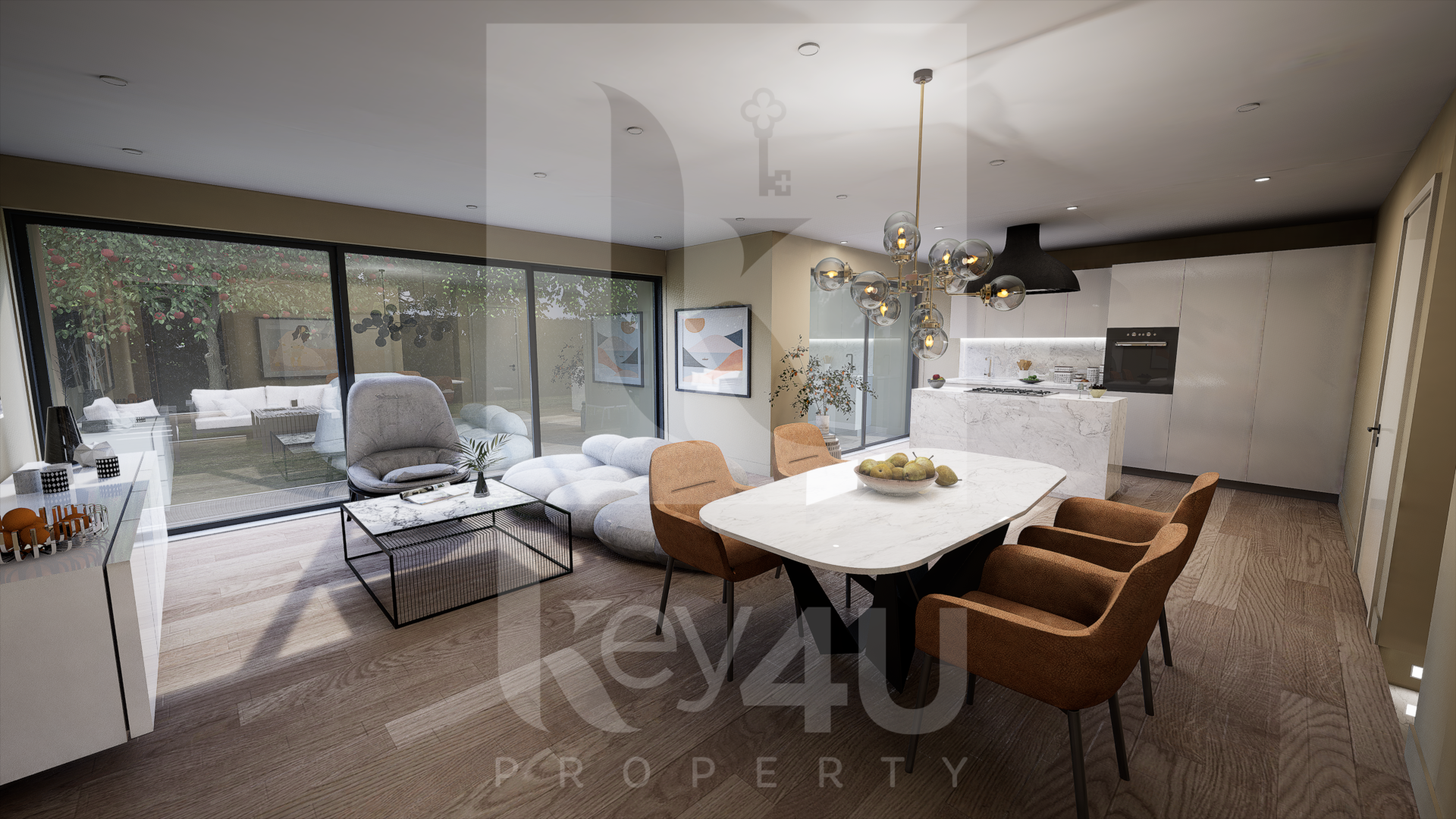 • L'accès est direct sur le salon, la salle à manger et la cuisine (45.49 m2).
