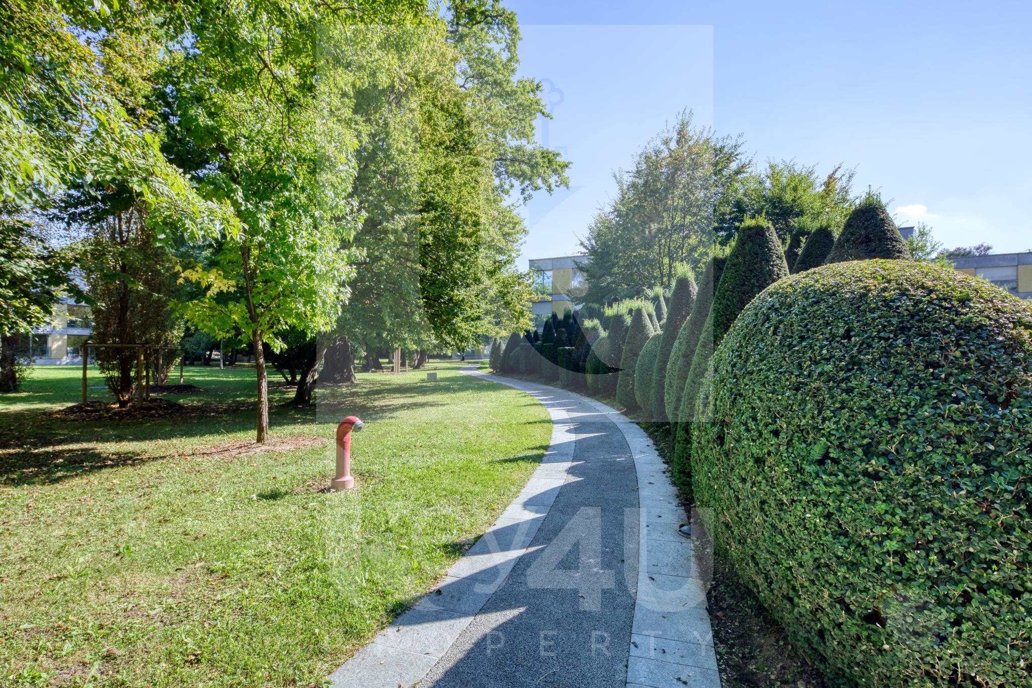 La résidence est composé de 3 immeubles de deux étages. Les jardins « à l’anglaise » sont arborés de chênes centenaires, et bénéficient de nombreux cheminements piétonniers, conférant à l’ensemble une élégance et une sobriété unique à Genève.